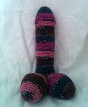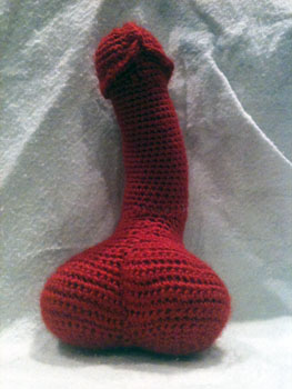 I’ve been a crocheter for many years, and was looking for something…different….to crochet. I found your site and was VERY HAPPY INDEED. I’m going to make one for my British bandmate, and will have to adapt your pattern in a couple of ways – he’s got 3 testicles, and is uncut. This will be my greatest crochet challenge – but I’m up for it. Just have to find some luvly mauve yarn to match him. THANK YOU FOR SHARING!!